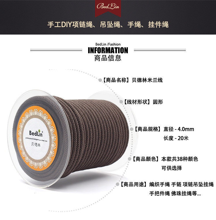 The Bedlin SDL221 4.0mm High-End Milan Thread is a premium-grade jewelry rope engineered for creators who need strength, durability, and luxury appearance in a single cord. Made from high-fiber nylon, this rope provides exceptional tensile strength, long-term flexibility, and a refined, smooth surface.