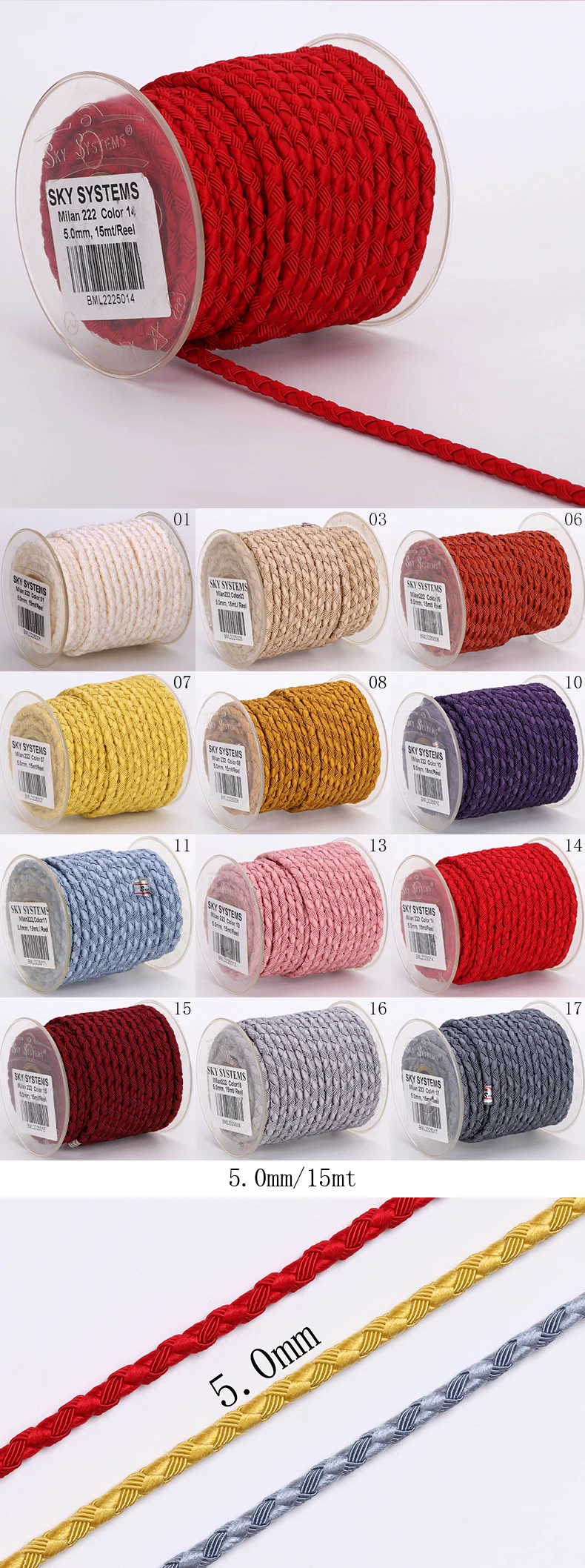 Part of our Milan Premium Collection, the SKY ML222 is a bold and versatile 5mm cord designed for designers and artisans seeking statement-making jewelry pieces. With its smooth texture and high-quality construction, this cord is perfect for bracelets, necklaces, macramé, and decorative accessories.